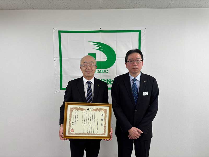 JR北海道様より感謝状を拝受いたしました